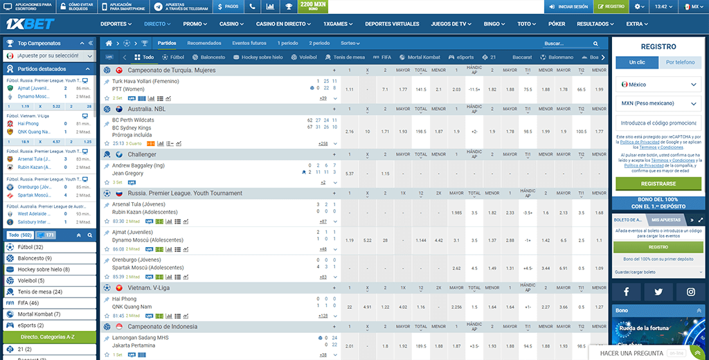 En 1xBet apuestas deportivas podrás apostar por miles de eventos que van desde los juegos del día de deportes estadounidenses como NBA, MLB y NFL hasta los partidos destacados del fútbol nacional e internacional como Liga MX, Ascenso MX, Champions League, ligas europeas y MLS, incluyendo cientos de opciones de tenis, rugby, boxeo, automovilismo y otros deportes. Si a esto le sumas cuotas atractivas, muchísimos métodos de pago para elegir y aplicaciones para instalar en sistemas Windows, iOS y Android, la experiencia es sensacional. A continuación, vamos con todos los detalles.